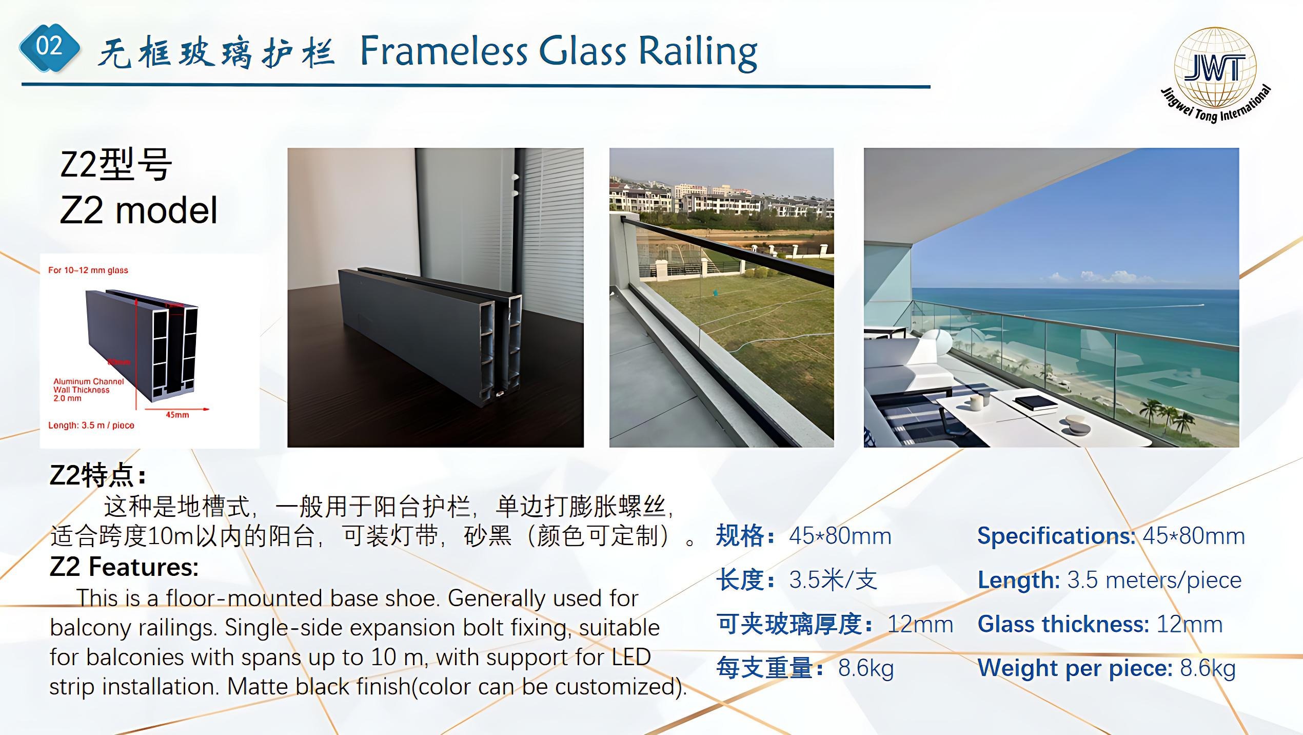 This is a floor-mounted base shoe. Generally used for balcony railings. Single-side