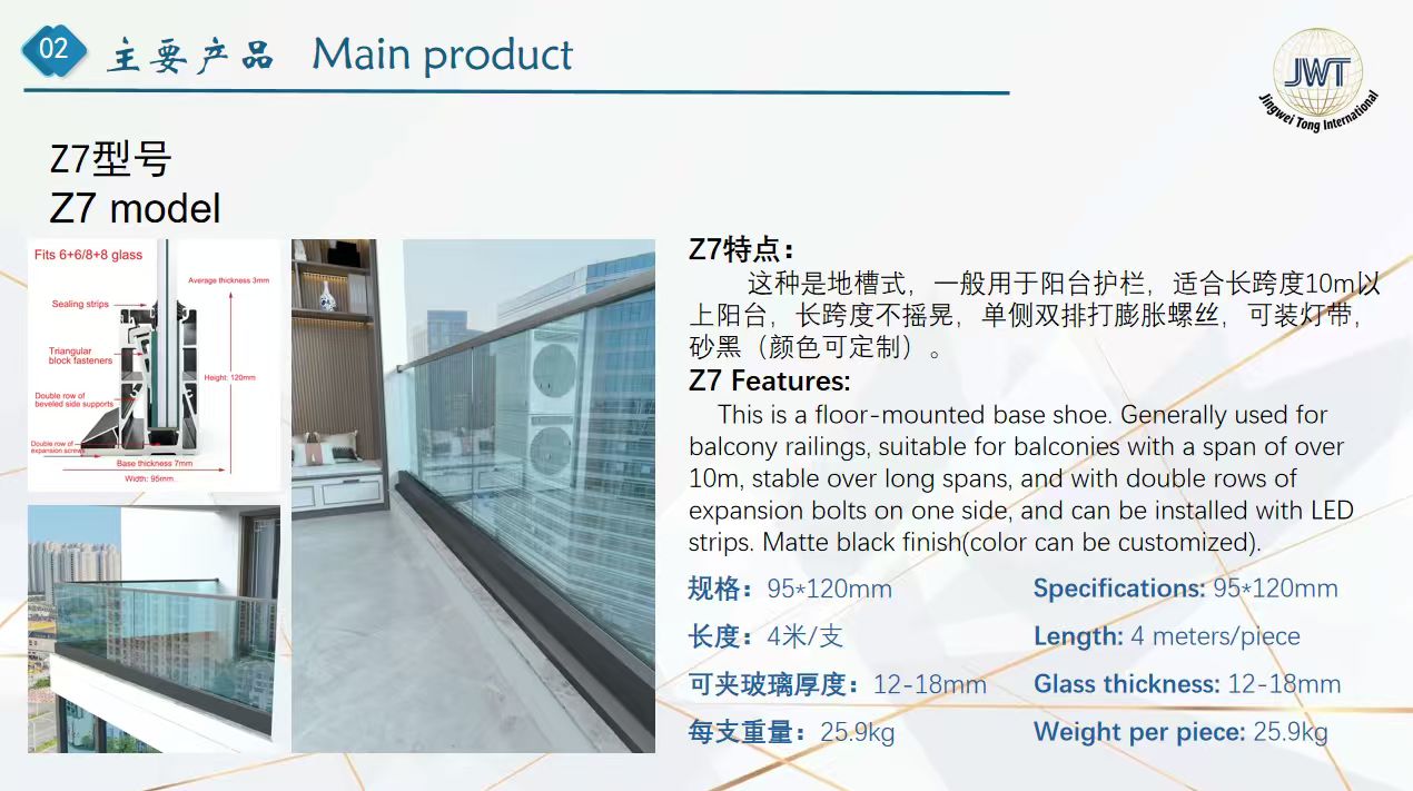 This is a floor-mounted base shoe. Generally used for balcony railings, suitable for balconies with a span of over 10m, stable over long spans, and